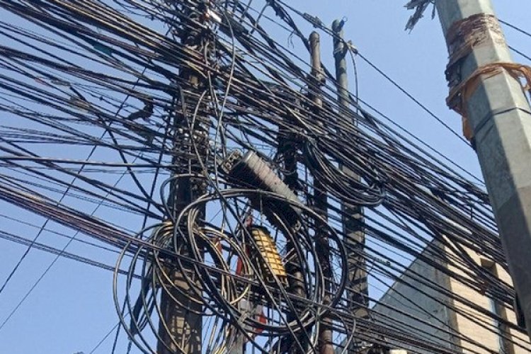 infomjlk.com — Pemandangan “semrawut” kabel telekomunikasi dan listrik yang menjuntai rendah hingga nyaris menyentuh tanah di..